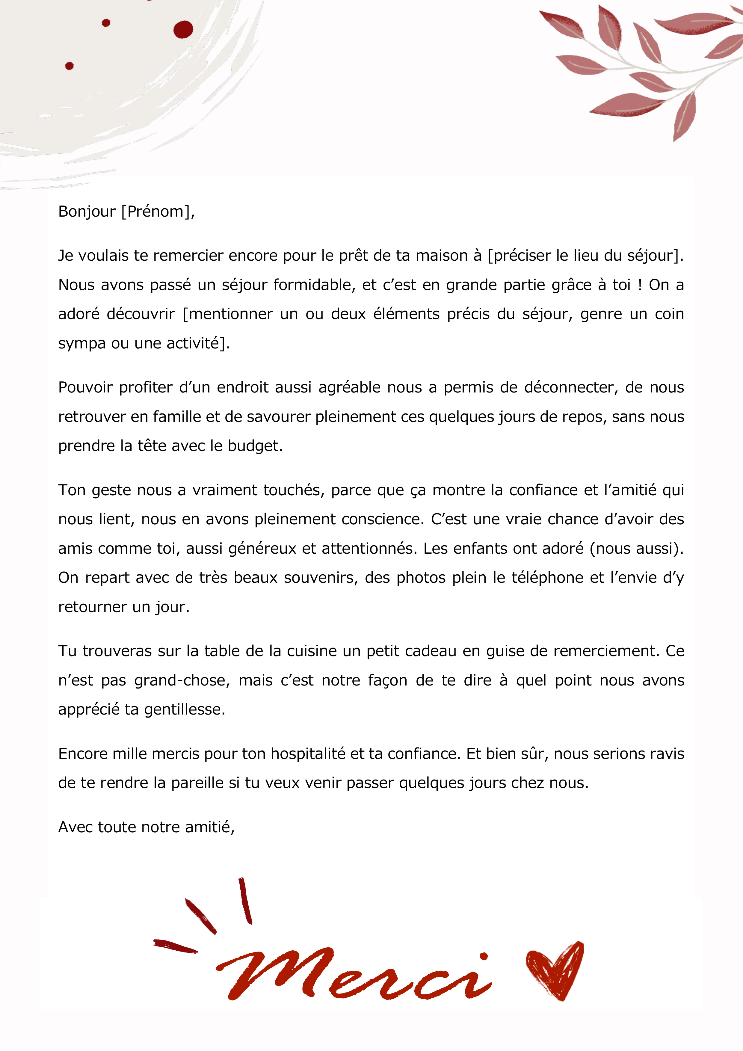 1 - Remerciements après le prêt d'un logement ou d'une location de vacances